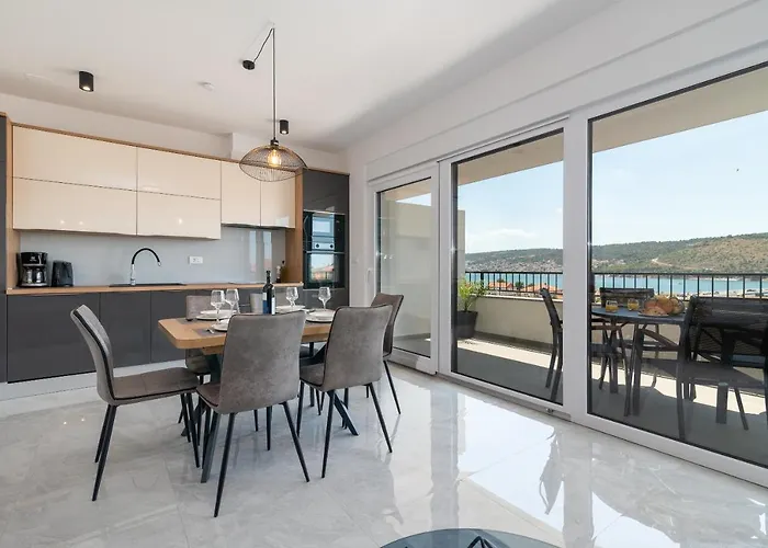 Apartment New Bridge Trogir van 76 m² biedt uitzicht op de zee en is op circa 20 minuten te voet van de Kerk en Klloster van Sint-Dominicus gelegen. Gasten kunnen gebruikmaken van Wi-Fi voor zowel zaken als vrije tijd.